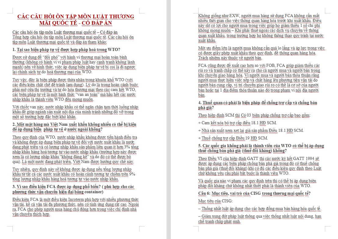 Sau đây là tài liệu ôn tập môn Luật thương mại quốc tế, file tài liệu gồm 2 phần: